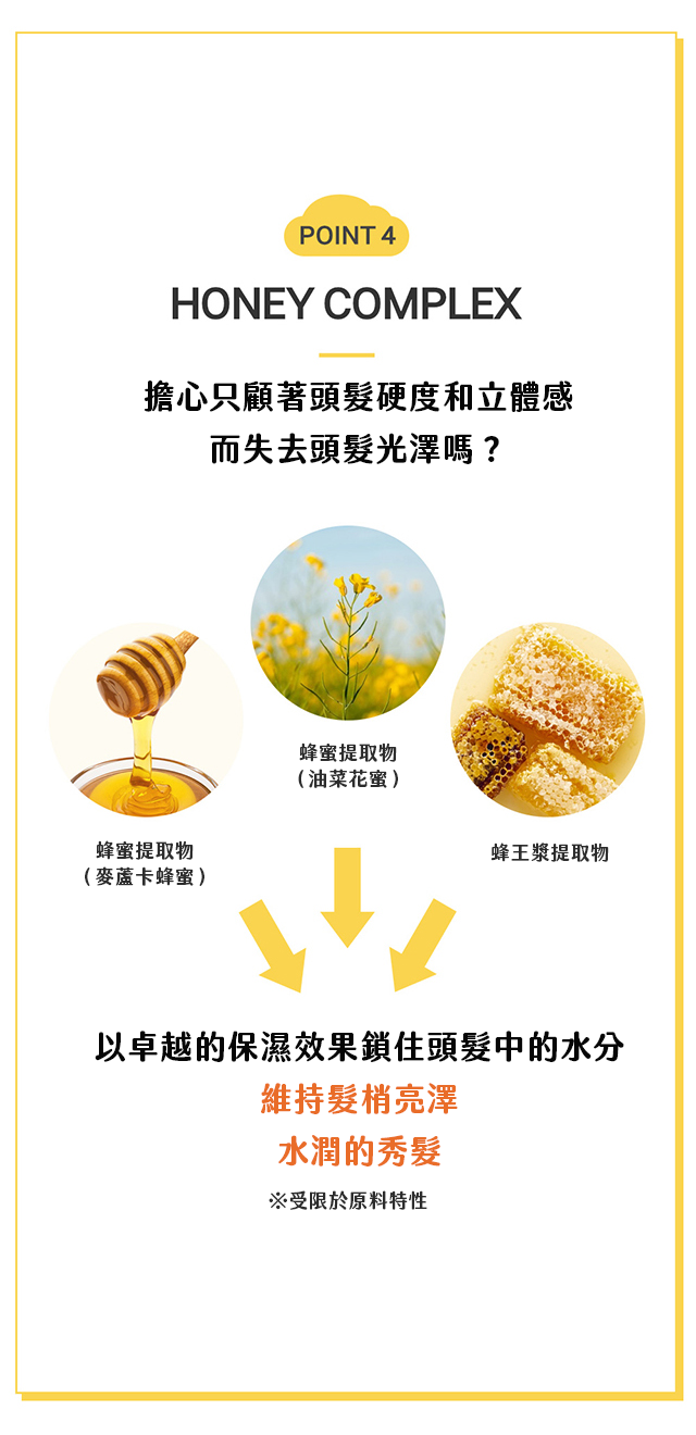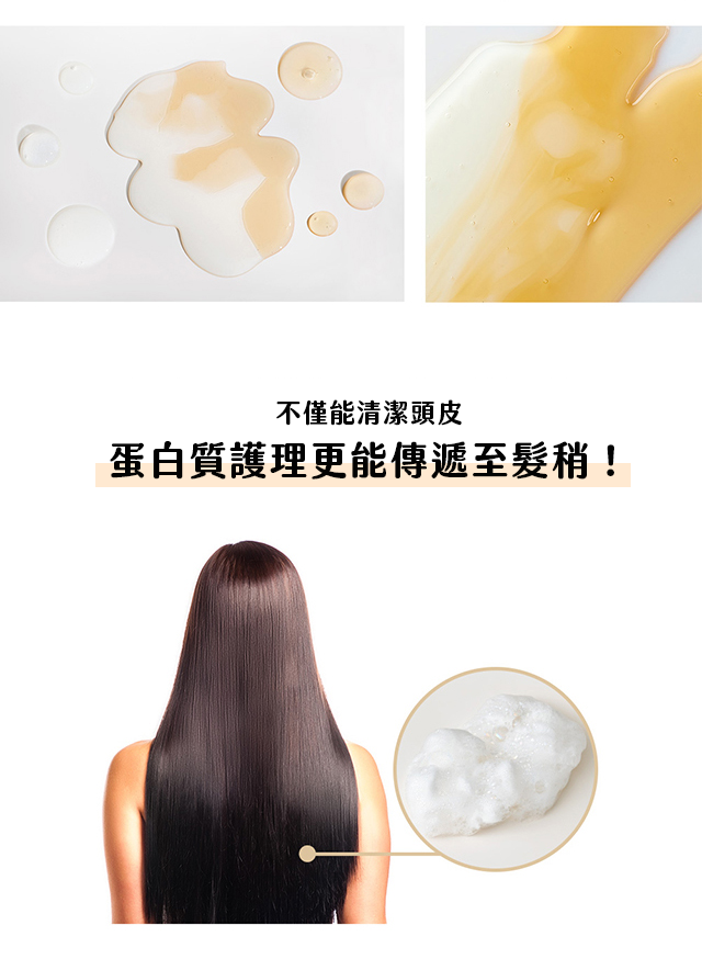 —含有豐富的蛋白質,改善發質、滋潤發絲、修復受損頭髮,讓頭髮變得光澤有彈性