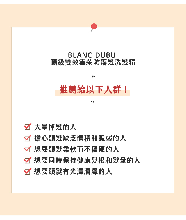 —頭皮保持潔淨健康,提供水分,在頭髮上形成一層水分膜