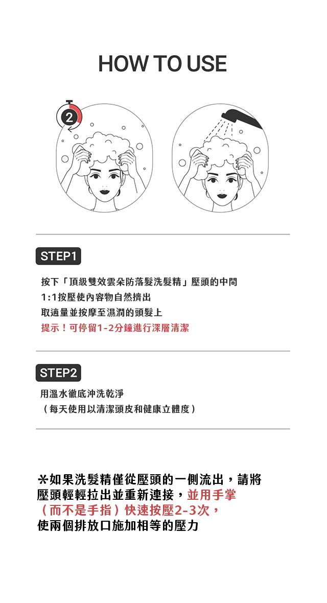 ➡️洗髮精包含兩管內容物,按壓式內容物1:1同時流出,洗髮精 +護髮素的融合洗護髮產品