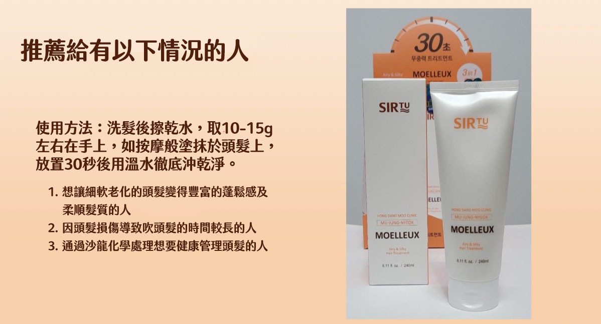 2. 取適量在手上,如按摩般塗抹於頭髮上