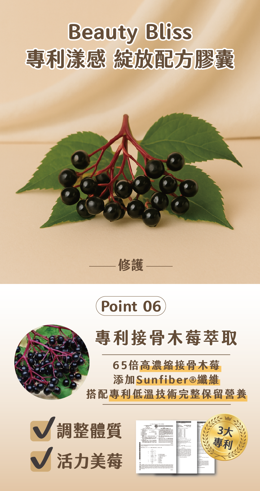 🔹 專利專利接骨木萃取 — 65倍高濃縮接骨木莓,添加Sunfiber®纖維