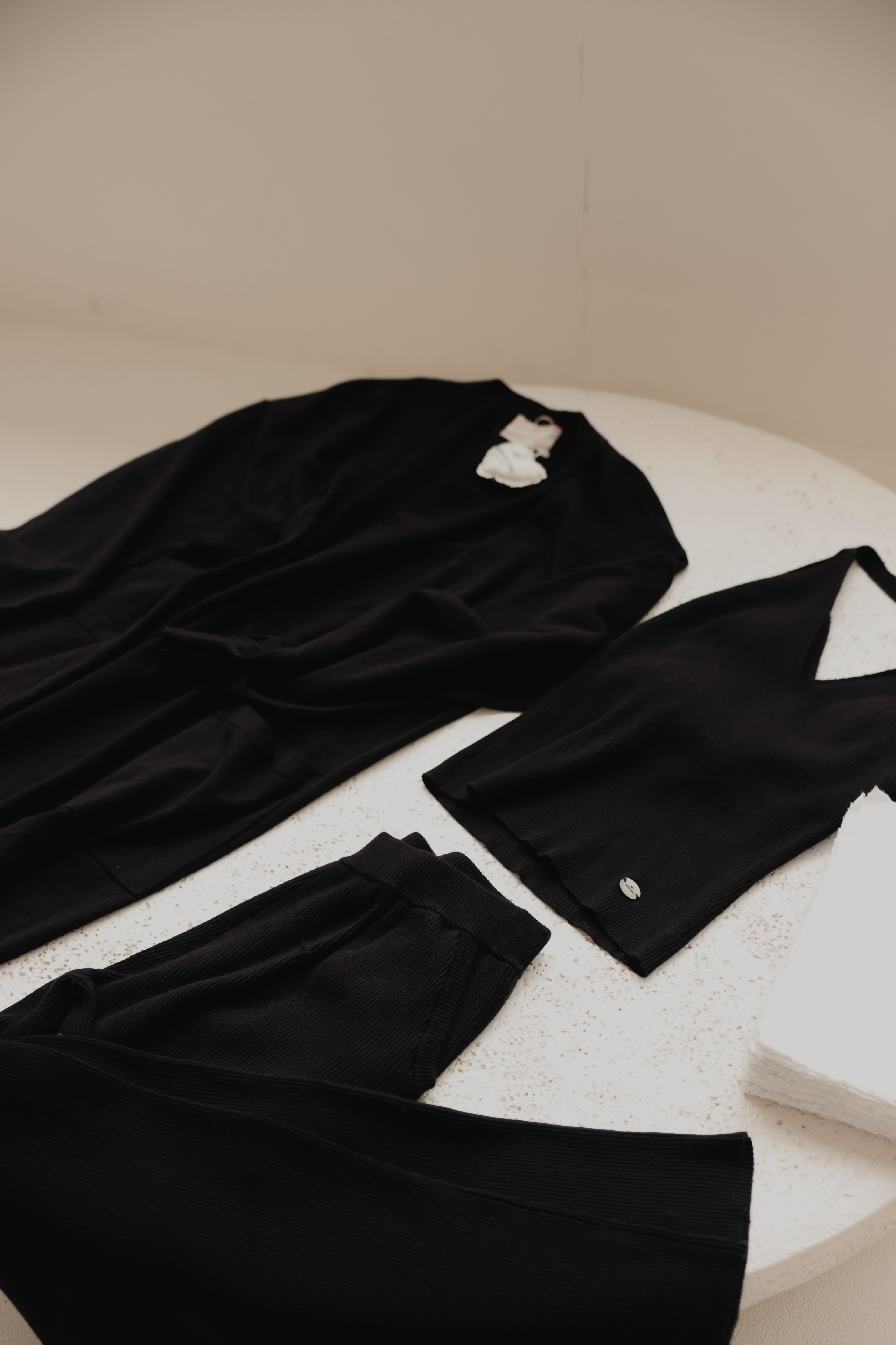 繞脖Bratop、開衩顯瘦長褲、針織柔軟外套一次擁有